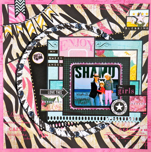 So, I've got a secret to tell you... I have a fascination with Heidi Swapp!!! And I don't know anything about her!!! Just that I am IN LOVE with her whole line of papers and embellies!!!! These papers worked wonders for my sister's Senior Year album but I decided to put them to use again for my "Make It Loud" challenge over at Colorful Creations. I also used the July 1st sketch from 2 Broke Girls, and combined this with the "Girls Just Wanna Have Fun" Blog Hop at Frosted Designs. The theme is girly... so girly it is!!!!